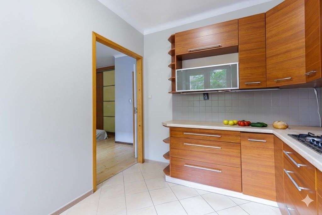 Na ścianach gładzie gipsowe, na podłodze terakota oraz parkiet. Pojemne szafy wnękowe w sypialni oraz w przedpokoju, okna PCV, kuchnia w pełni wyposażona.